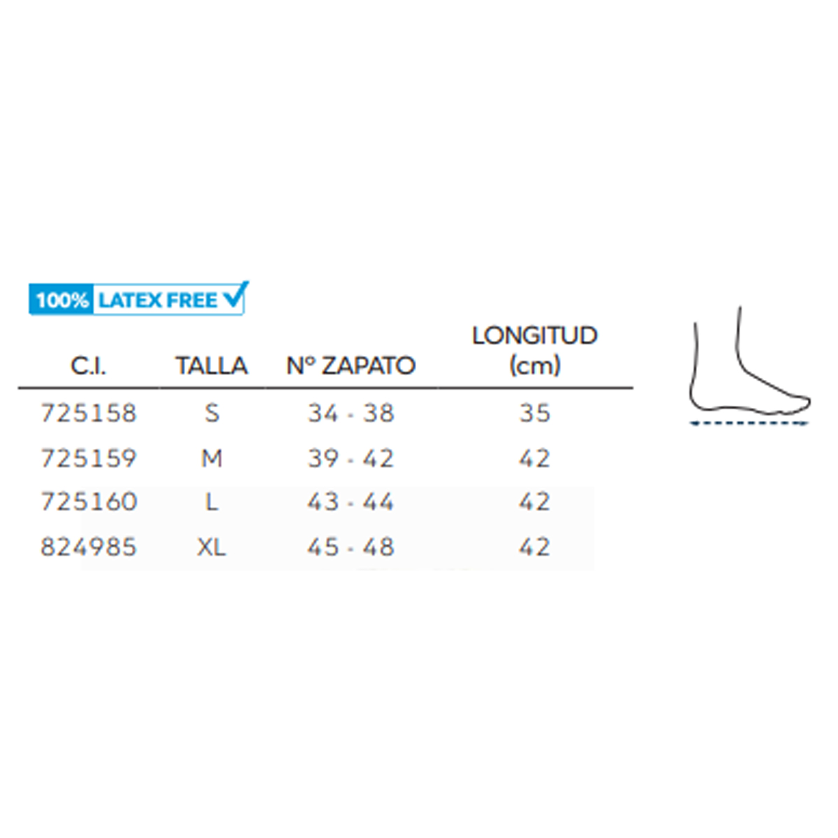 Ortesis inmovilizadora de la articulación tibio-tarsiana. Bilateral, sin látex. Indicaciones: Esguince de tobillo de todos los grados. Lesión en los tejidos blandos de la pantorrilla, pie y/o tobillo. Fractura distal por estrés de la tibia y peroné. Fractura estable del pie y /o tobillo. Post ORIF (reducción abierta y fijación interna) y estabilización quirúrgica después de reparaciones de tendones y/o ligamentos. Cirugía del tendón de Aquiles. Fascitis plantar