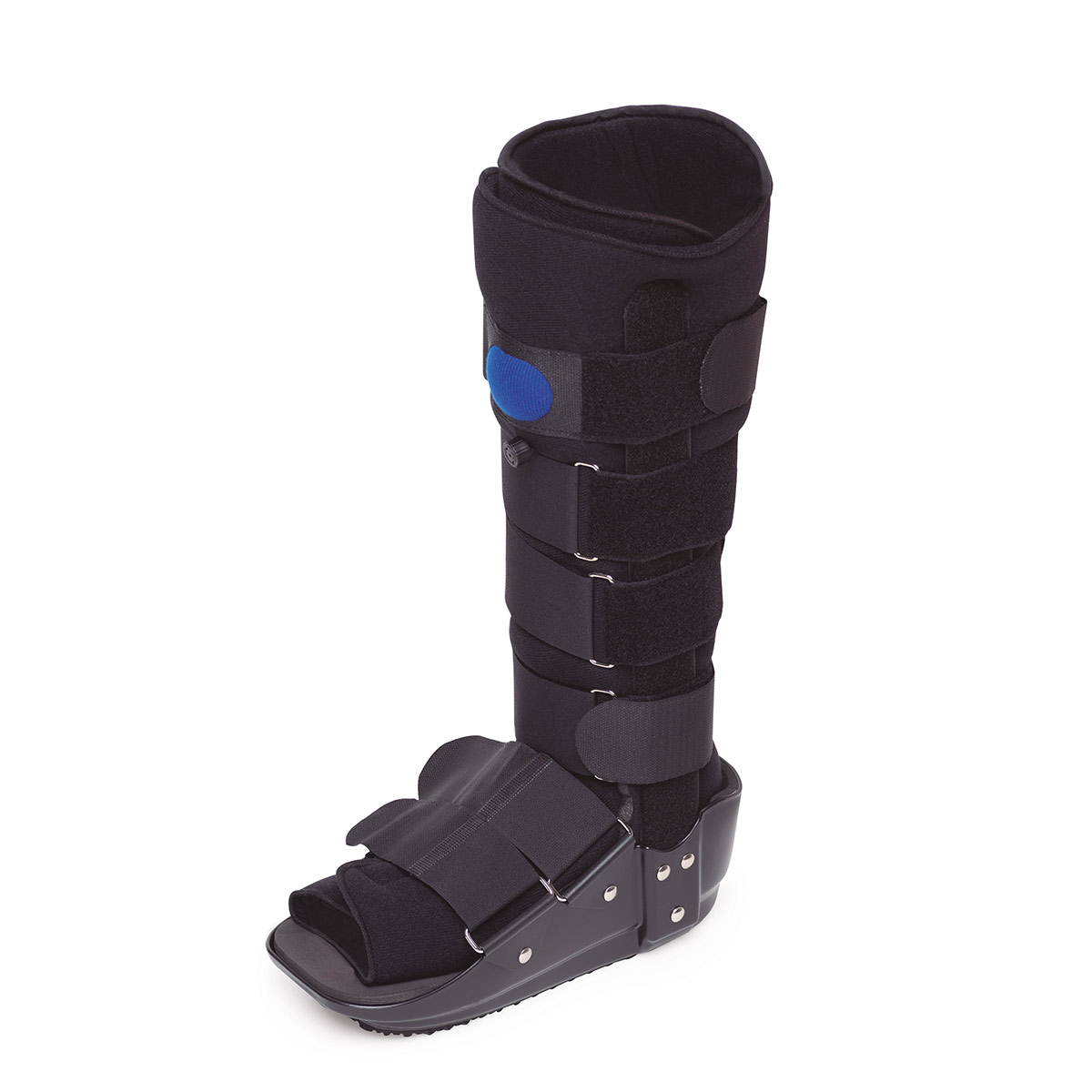 Indicaciones: Esguince de tobillo de todos los grados. Lesión en los tejidos blandos de la pantorrilla, pie y/o tobillo. Fractura distal por estrés de la tibia y peroné. Fractura estable del pie y /o tobillo. Post ORIF (reducción abierta y fijación interna) y estabilización quirúrgica después de reparaciones de tendones y/o ligamentos. Cirugía del tendón de Aquiles. Fascitis plantar.